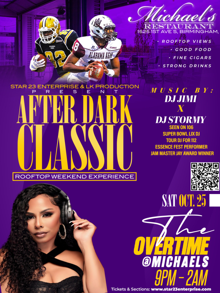 YOU CAN PAY MORE AT THE DOOR! 🎉 MAGIC CITY CLASSIC WEEKEND — AFTER DARK ROOFTOP EXPERIENCE Presented by Star 23 Enterprise x LK Production 📍 Michael’s Restaurant Rooftop 1525 1st Ave S, Birmingham, AL 35233 🔥 SATURDAY, OCTOBER 25 | 9PM – 2AM 🎉 “OVERTIME @ MICHAEL’S” The official Saturday night rooftop turn-up after the game […]